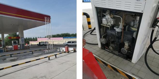 项目内容:现有站房一座,340m2罩棚一座,税控加油机4台,其中汽油加油机3台,柴油加油机1台;设SF双层储油罐4个,其中汽油罐2个,单罐容积均为30m3;柴油罐2个,单罐容积均为20m3,总容积100m3。折合油罐总容积80m3,依据《汽车加油加气站设计与施工规范》GB50156-2012(2014年版),该站属三级加油站。