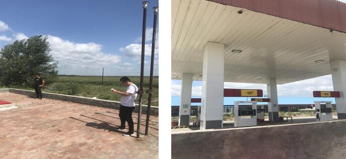 项目内容:现有罩棚225平方米,税控加油机4台。该站设地下储油罐4个,其中汽油储罐(单层钢制油罐)2个,储量分别为12m3、8m3;柴油储罐(单层钢制油罐)2个,储量分别为12m3、8m3;储罐区总容积40m3,折合汽油容积为30m3(柴油储罐容积折半计入),根据《汽车加油加气站设计与施工规范》GB50156-2012(2014年版)的规定,该站为三级加油站。