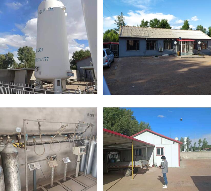 经营内容:现有180㎡办公室一座,121.03㎡氧气充装间一座,92.4㎡二氧化碳、氩气充装间一座,58.8㎡乙炔、丙烷储存间一座,所有建筑均为地上一层;设有15m³低温液氧储罐1个,30m³低温液氧储罐1个(未投入使用),20m³低温液氩储罐1个,20m³低温液态二氧化碳储罐1个。站内的储罐区,氩气、氧气、二氧化碳的充装间,丙烷、乙炔储存间等均安装可燃气体报警器,储罐、充装间、储存间均安装避雷装置。设有室外消火栓1处,在乙炔储存间南侧,并配备消防器材若干。