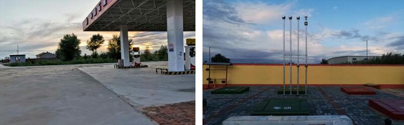 项目内容:站房163.1平方米,罩棚286平方米,税控加油机4台。该站设地下储油罐3个,其中汽油罐1个,容积为30m³;柴油罐2个,容积均为30m³,为三级加油站。