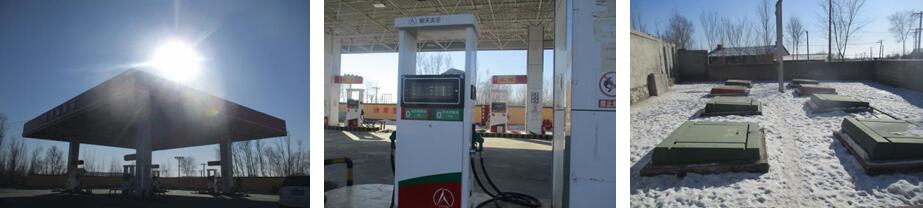 项目内容:该站现有3台双枪双油品潜油泵加油机(其中汽油/柴加油机2台、柴油-35#/柴油0#加油机1台)和1台双枪单油品(柴油0#)潜油泵加油机。设有埋地油罐区一处,其中汽油储罐1个,单罐容积均为40m3,柴油罐3个,单罐容积为40m3的柴油罐1个,单罐容积为20m3的柴油罐2个,储罐区总容积120m3,折合汽油容积为80m3(柴油储罐容积折半计入),根据《汽车加油加气站设计与施工规范》GB50156-2012(2014年版)的规定,因汽油折合容积计算该加油站属于三级站,但汽油单罐容积大于30m3,故该站按二级站的标准要求。