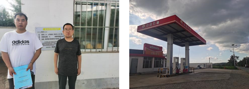 该加油站位于吉林省四平市伊通满族自治县河源镇北,站区占地面积876m2,现有面积为79.28m2的站房一座,69m2罩棚一座;罩棚下设置有1座加油岛,设加油机2台,其中乙醇汽油加油机1台,柴油加油机1台;设SF双层地下储油罐4座,其中乙醇汽油罐2座,容积均为20m3,柴油罐2座,容积均为20m3,储罐总容积80m3,折合油罐总容积60m3(柴油储罐容积折半计入);根据《汽车加油加气加氢站技术标准》GB50156-2021的规定,该加油站为三级加油站。